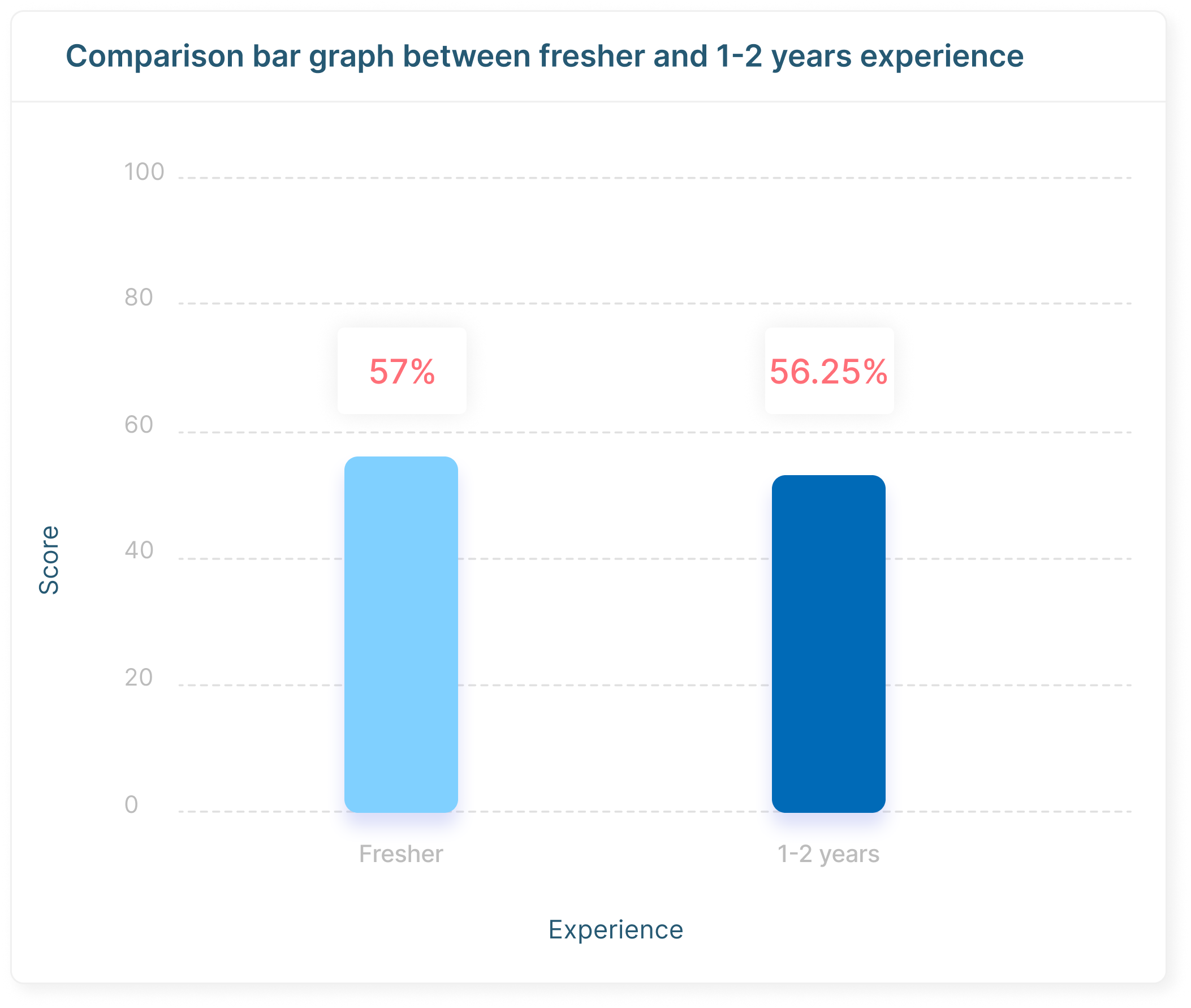 In the same cohort of sales agents, those with no prior work experience had a skills score of 57% and agents with over three years of experience only saw a slight increase of 1.5% in their skill score.